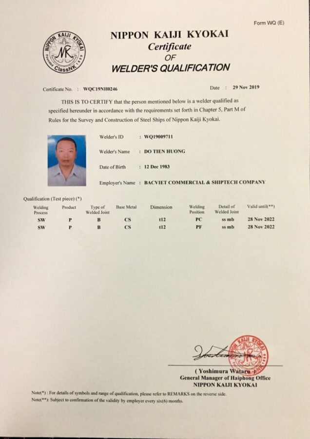 When hiring Vietnamese welders for EU projects, employers should request a complete welder certification package that includes: